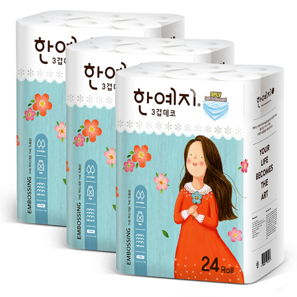 한예지 3겹데코 천연펄프 화장지 22M 24롤 (3팩)