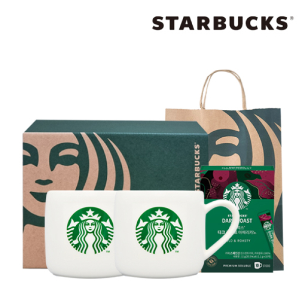 [스타벅스] 그린 사이렌 머그 355ml 2개 + 커피 10입 (패키지, 쇼핑백 동봉)