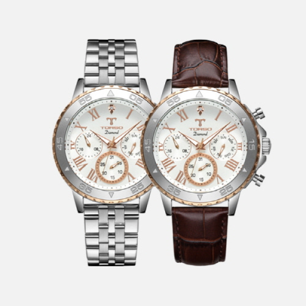 [토르소]멀티펑션 남성 메탈 다이아몬드 시계 T76M SSS(가죽밴드 추가 증정)