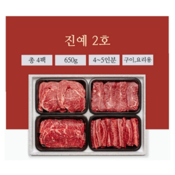 [진우담] 1++한우 구이용 모듬 진예 2호 650g(꽃등심200g+부채살150g+채끝150g+갈비살150g)