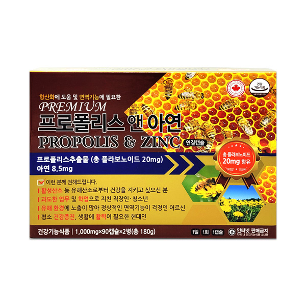 프리미엄 프로폴리스 앤 아연 1,000mg 180캡슐 6개월분