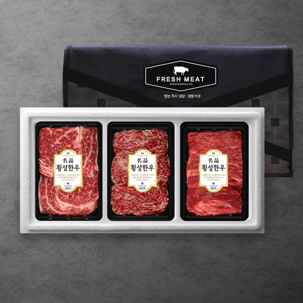 1등급 암소숙성 횡성한우 구이정육세트 2호(총1.2kg/팩당400g/꽃등심+불고기+국거리)냉장