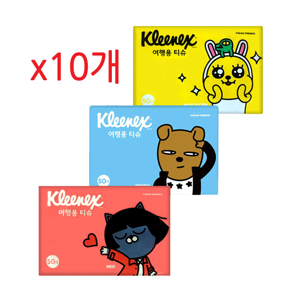 크리넥스 카카오프렌즈 휴대용 여행용 티슈 50매 x10개