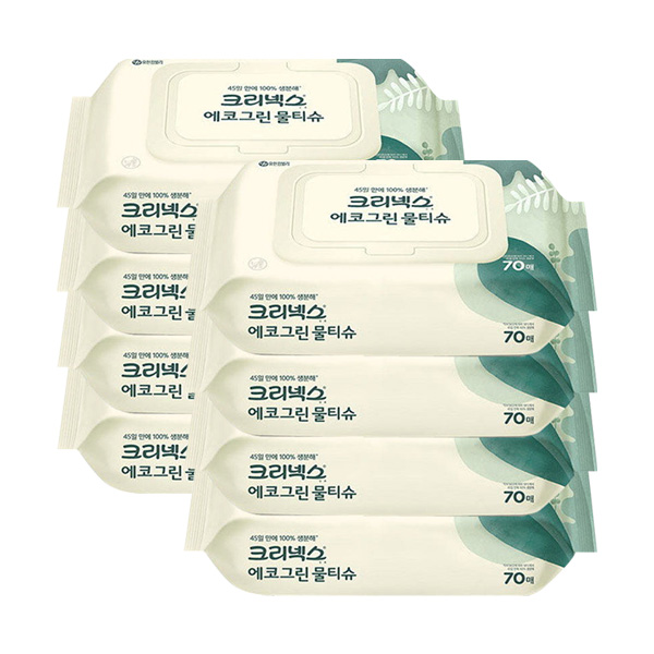 크리넥스 에코그린 생분해 물티슈 캡형 70매 x8개
