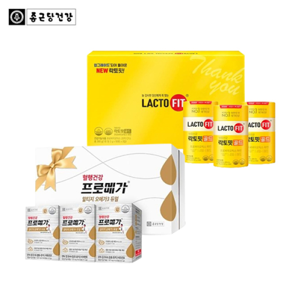 [종근당건강] NEW락토핏 골드 선물세트(리뉴얼)(3EA) + 프로메가 알티지 오메가3 듀얼 선물세트(60캡슐*3EA)