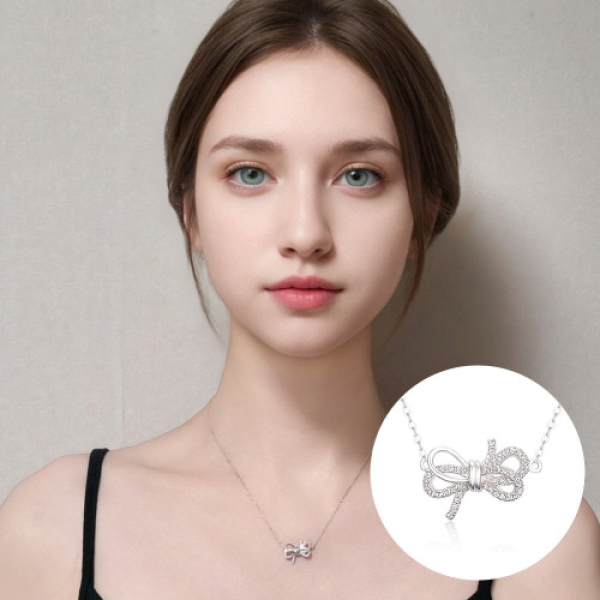 [탠디] 실버925 지르코니아 리본 목걸이 네크리스 TDN610 실버