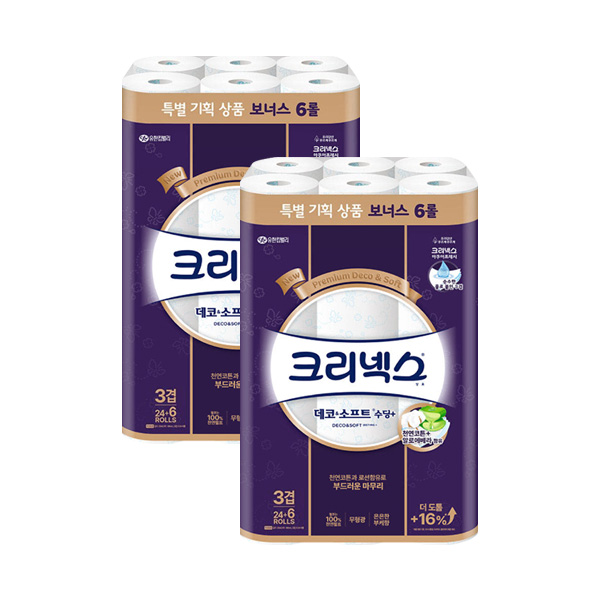 크리넥스 데코소프트 수딩플러스 3겹 25m 24+6롤 x2개