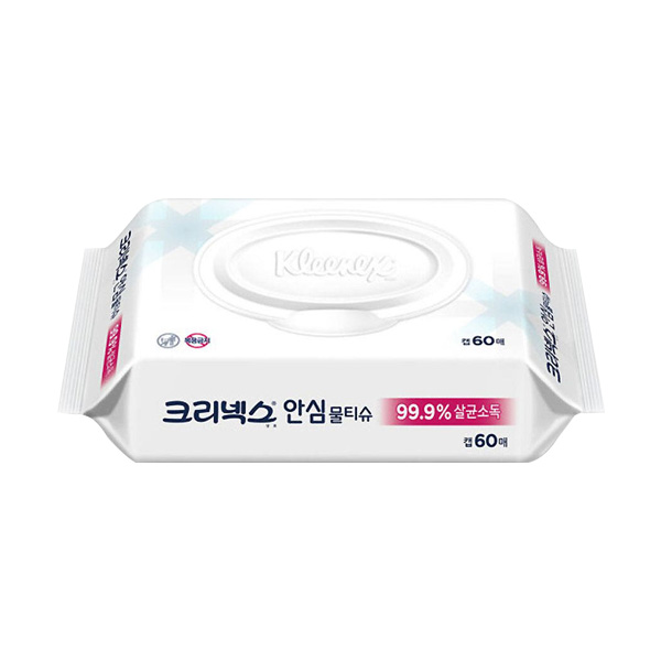 크리넥스 99.9% 항균 안심물티슈 캡형 60매x1개 세균제거