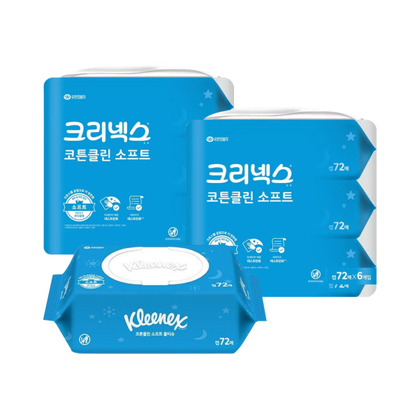 크리넥스 코튼클린 소프트 물티슈 72매 x12개