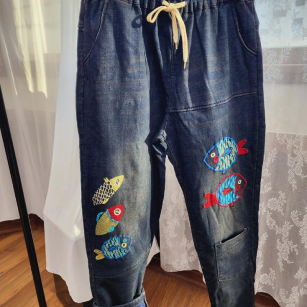 폭닥한 기모안감 사방스판 루즈핏 자수 데님 청바지
