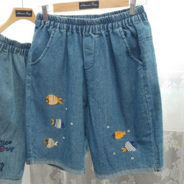 여름 데님 4부 롤업 워싱 데님 밴딩 팬츠
