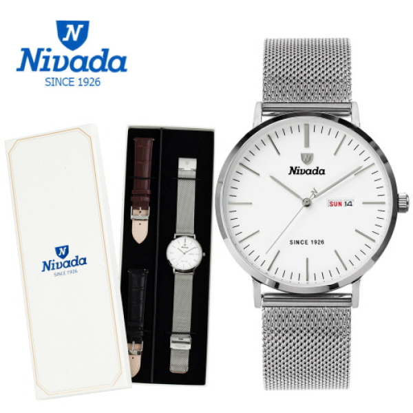 [니바다] 클래식 남성 캘린더 메탈워치 1016 (가죽밴드2개증정 3가지연출)