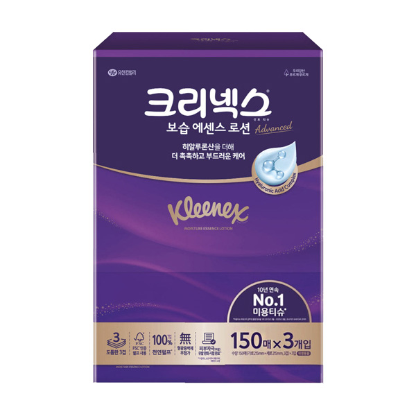 크리넥스 도톰한 3겹 보습에센스 (150매x3입) x1팩 보습티슈 각티슈