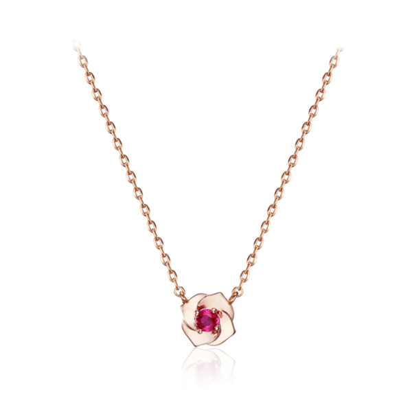 엘르주얼리 14K GP 루비 플라워 심플 목걸이 ELBRNN222