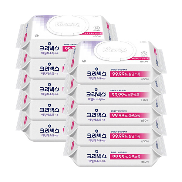 크리넥스 데일리 소독티슈 캡형 50매 x10개