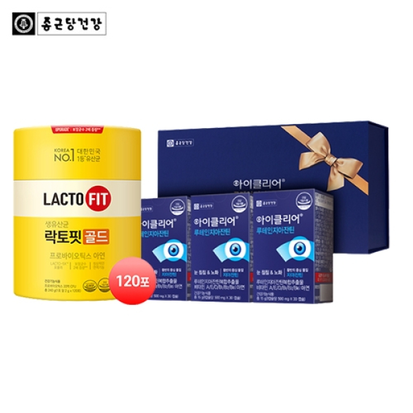 [종근당건강] NEW락토핏 골드(리뉴얼)(120포) + 아이클리어 루테인 지아잔틴 선물세트(30캡슐*3EA)