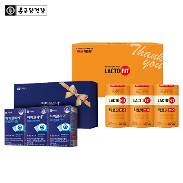 [종근당건강] NEW락토핏 코어 선물세트(리뉴얼)(3EA) + 아이클리어 루테인 지아잔틴 선물세트(30캡슐*3EA)
