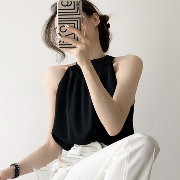 쉬폰 셔링 민소매 블라우스