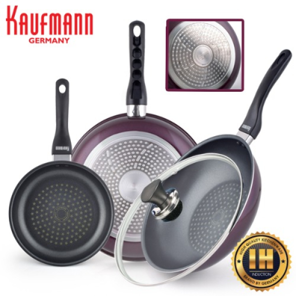 [카우프만] 퍼플 인덕션 프라이팬 4P세트(G형) KPF-G4P [20cm프라이팬+28cm프라이팬+28cm궁중팬+28cm유리뚜껑]