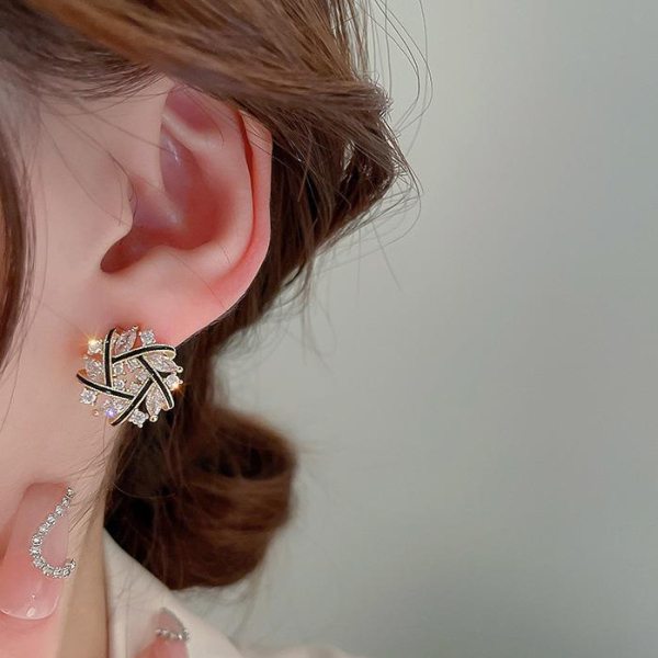 S925 블랙 플라워 화관 귀걸이