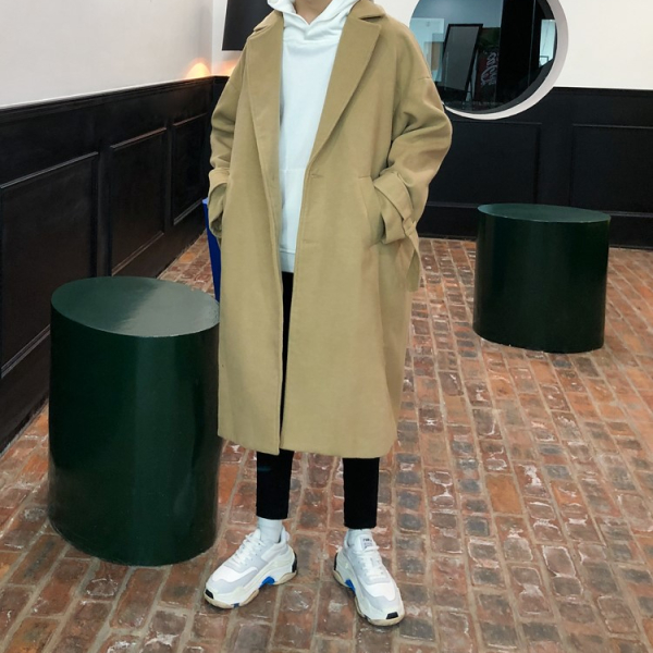 남성 카라멜 베이지 캐쥬얼 모직 코트