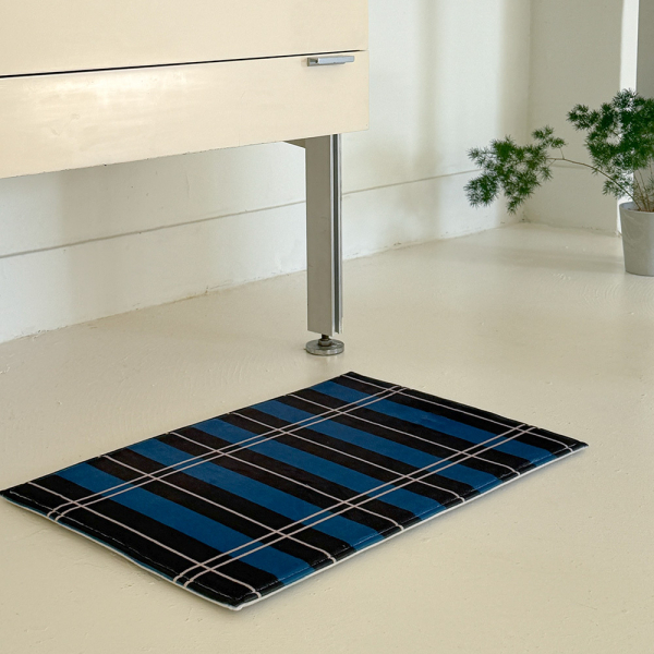 [Guy Laroche] 기라로쉬 체크 극세사 메모리폼 발매트 (월넛블루)