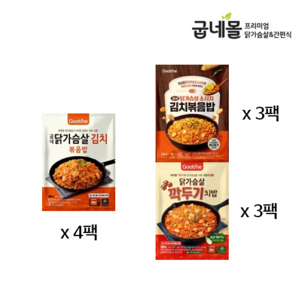 [굽네] 닭가슴살 잡채볶음밥 4팩+닭가슴살 소시지 김치볶음밥 3팩+닭가슴살 깍두기 치밥 3팩