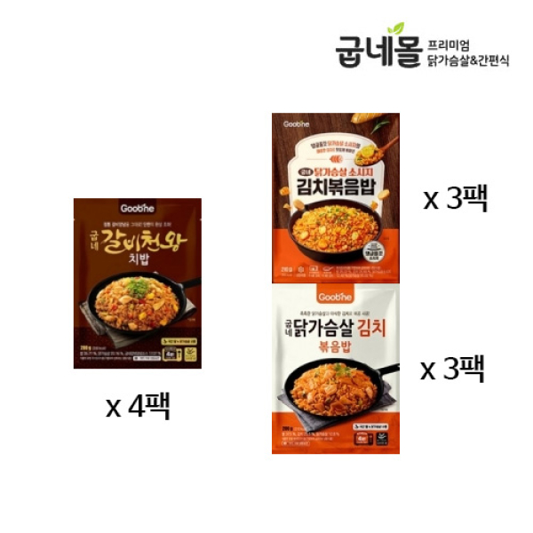 [굽네] 닭가슴살 갈비천왕 치밥 4팩+닭가슴살 소시지 김치볶음밥 3팩+닭가슴살 김치볶음밥 3팩