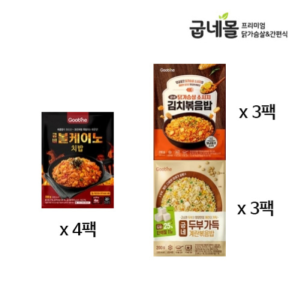 [굽네] 닭가슴살 볼케이노 치밥 4팩+닭가슴살 소시지 김치볶음밥 3팩+두부 가득 계란볶음밥 3팩