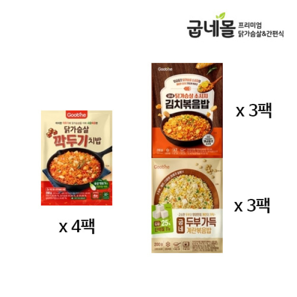 [굽네] 닭가슴살 깍두기 치밥 4팩+닭가슴살 소시지 김치볶음밥 3팩+두부 가득 계란볶음밥 3팩