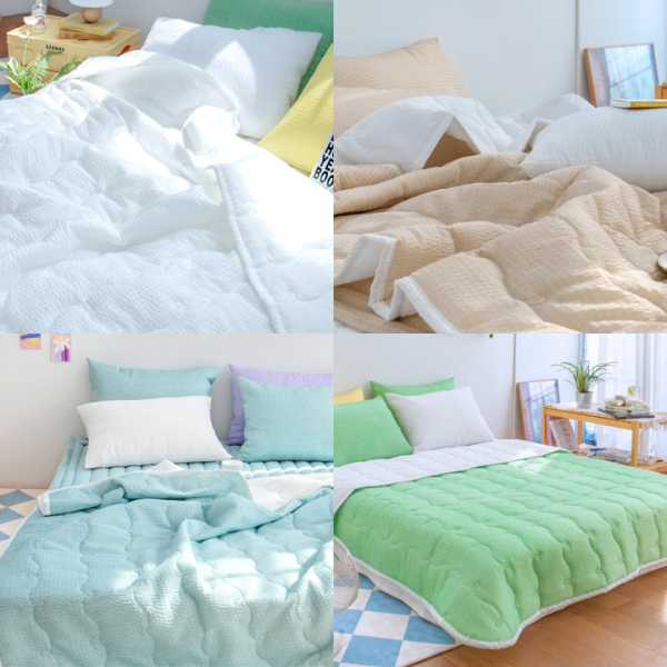 그래이불 냉기솔솔 모기기피 알러지 여름이불 천연 유칼립투스 시어서커 선염 라운드 침구 세트 Q