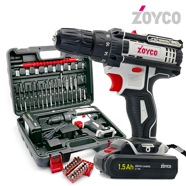 [조이코] 플렉시블 가정용 전동드릴세트 18.5V (본체+배터리+비트 총 60pcs)