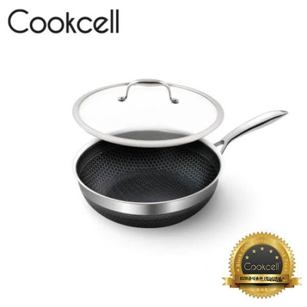 [Cookcell] 쿡셀 통3중 더블 세라믹 코팅 블랙에디션 IH 궁중팬 20cm + 유리뚜껑 20cm 2종 세트 / 품번 : 03012