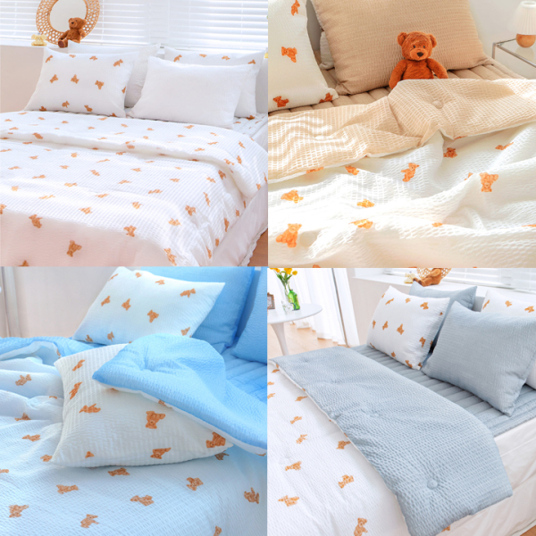 그래이불 냉기솔솔 모기기피 알러지 여름이불 천연 유칼립투스 시어서커 곰돌이 라운드 침구 Q/K 공용