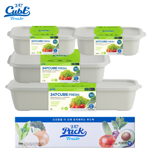 247 큐브/팩 혼합 5종 세트 (750ml+750ml+1700ml+2000ml+지퍼팩 대형) / 신선도 유지기능