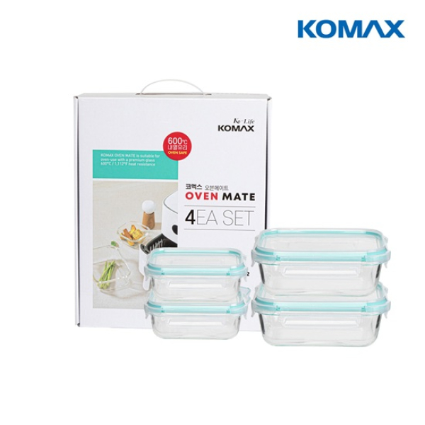 [코멕스] 오븐메이트 밀폐용기 직사각 차곡혼합 4조 (370ml*2 640ml*2) 손잡이케이스