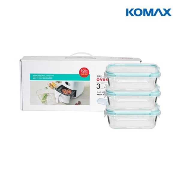 [코멕스] 오븐메이트 밀폐용기 직사각 3조(2-1호) (640ml*3) 손잡이케이스