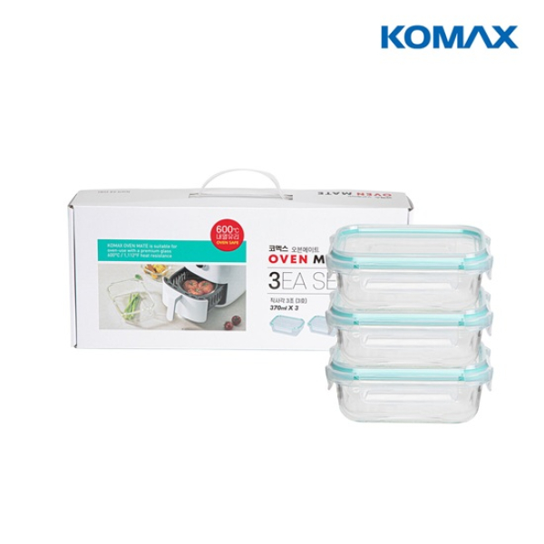 [코멕스] 오븐메이트 밀폐용기 직사각 3조(3호) (370ml*3) 손잡이케이스